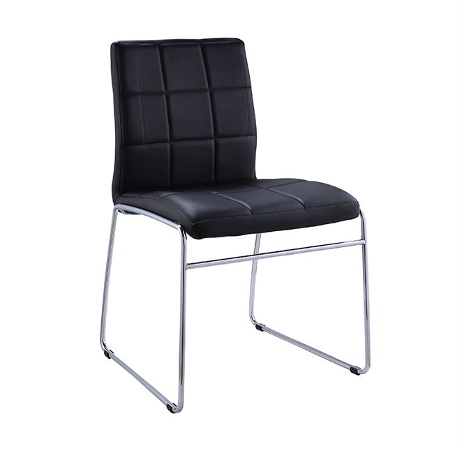 The Gordie collection chairs offer versatility and sleek design that enhance any dining room. These lovely chairs feature armless, white padded seat and back, checkered pattern, footrest support and metal sled base in chrome finish. Upgrade your home with these counter height chairs. Matching table is available.