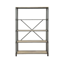 The Itzel Bookcase is functionally designed with an attractive classic antique oak & sandy gray finish to enhance your Decor. Organize your essentials with this unique, stylish bookcase. Different level contoured shelves and a versatile construction highlight this beautiful bookcase. Some Assembly Required.