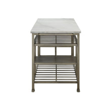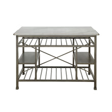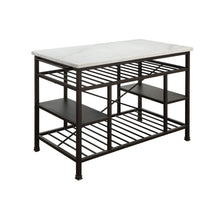 The Lanzo Kitchen Island is equally ideal for counter space or an excellent choice for display with extra storage. Blending contemporary style with industrial charm, the design is both stylish and functional. The metal frame adds a touch of industrial impression to the modern marble top style. Featuring four open shelves this is a must-have for every home.