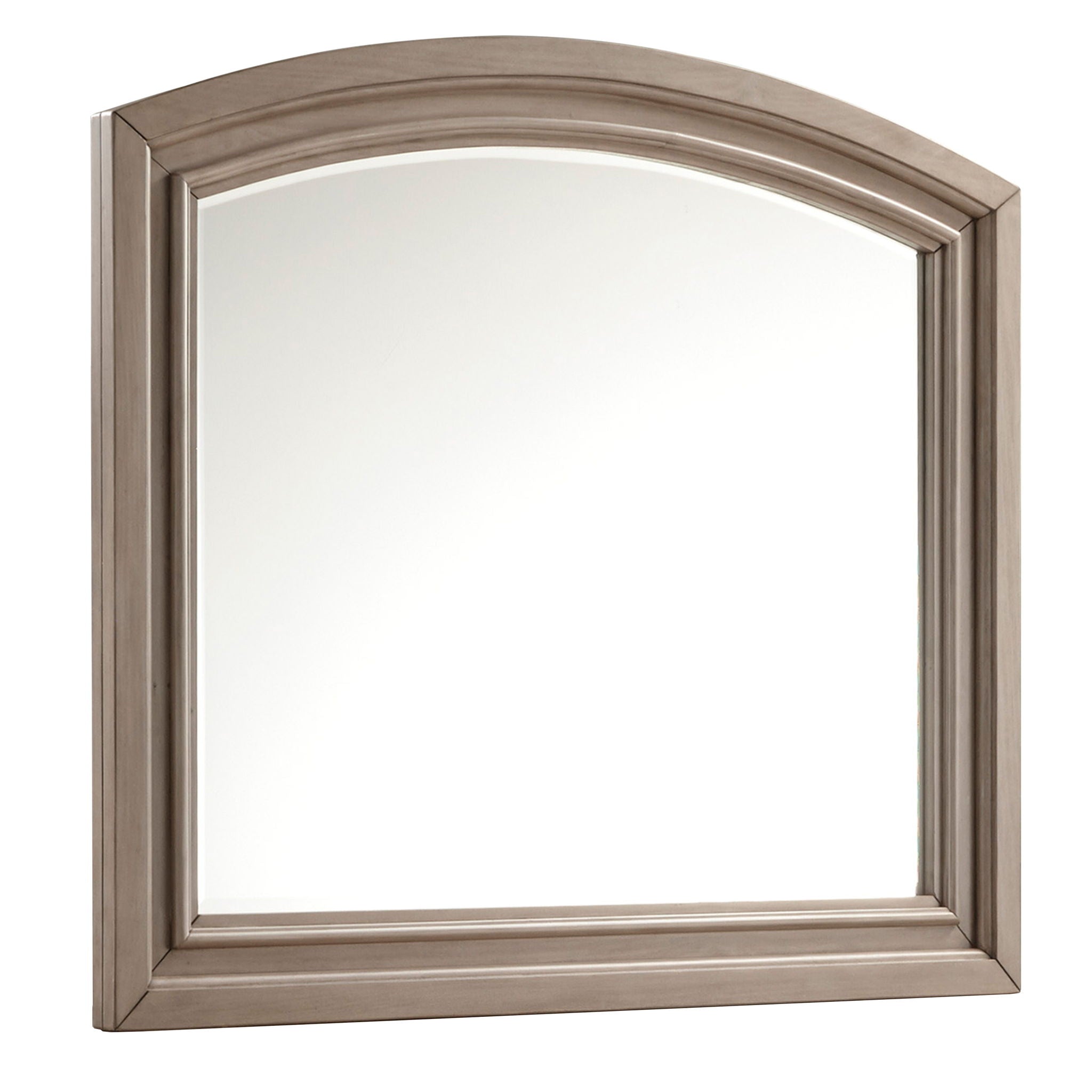 Satisfying your taste for tradition, this bedroom group sports serene sophistication. Forever classic design details like inset panels, silvertone patina hardware and bun feet are so easy to love. A burnished light gray finish elevates the look with modern sensibility. Made with select Birch veneers and hardwood solids. Burnished light gray finish. Drawers feature a silver-tone patina color knob and back plate. Dovetail drawer construction. Drawer interior with color finish. Ball bearing drawer glide. Felt drawer bottoms on select drawers. Beveled mirror.