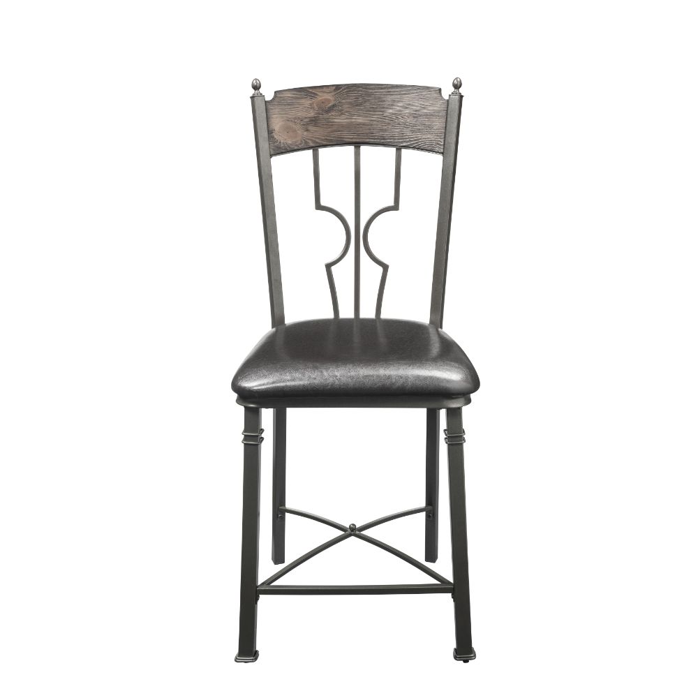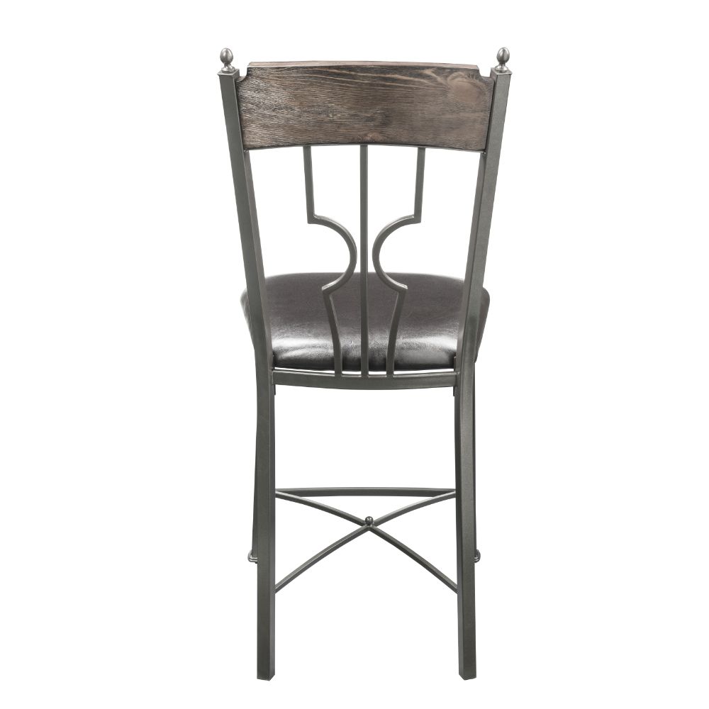 KD, Armless Chair (High Back) Stationary Seat: Counter Height Padded Seat: PU Cushion Metal Open Backrest with Curved Wooden Top Metal Leg and "X" Crossbar Support: Dark Bronze Finish, Square Metal Steel Tube