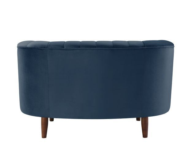 An ode to mid-century modern, the Millephri collection will help achieve this modern aesthetic. The pocket coil foam seating gives off the feel of sitting on a plush cloud. The pieces are upholstered in a gorgeous velvet fabric and feature deep channel tufting, for added texture and depth. The wooden legs provide stability and style. This collection provides an instant upgrade in any room. Available in three colors, olive-yellow, gray and, blue.