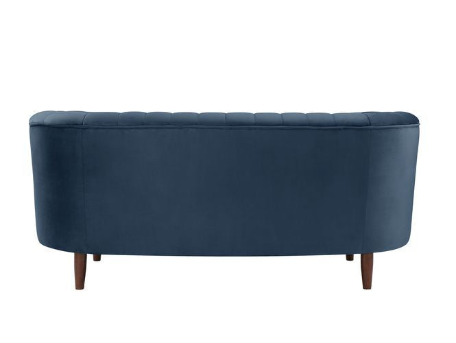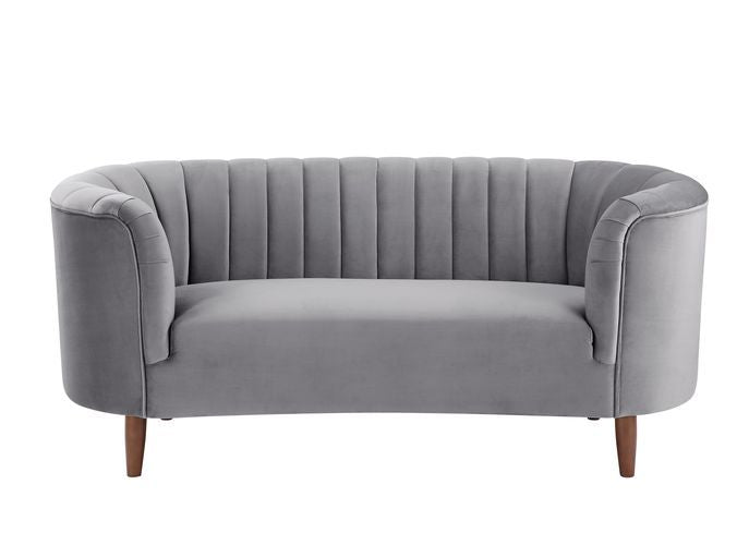 An ode to mid-century modern, the Millephri collection will help achieve this modern aesthetic. The pocket coil foam seating gives off the feel of sitting on a plush cloud. The pieces are upholstered in a gorgeous velvet fabric and feature deep channel tufting, for added texture and depth. The wooden legs provide stability and style. This collection provides an instant upgrade in any room. Available in three colors, olive-yellow, gray and, blue.