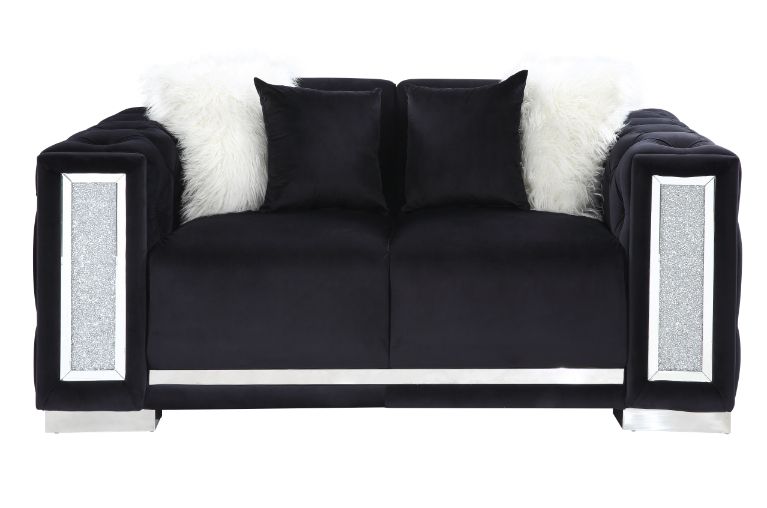 Center your living room around utmost sophistication and exquisite style with this Trislar collection. The collection offers your interior space eye-catching appeal with its button-tufting details and mirrored trim accent. In a buttery soft black velvet upholstery to add richness and perfect modern glam addition for any room. With sleek chrome legs, this piece not only adds refined elegance, but also provides ultimate tranquility.