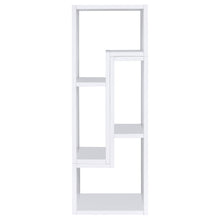 Enjoy the charming and clever design of a practical and pretty piece. This staircase bookcase shows off the visually pleasing effect of staggered shaping. A lovely bright white finish adds a cheerful touch. Tuck art, books, and plants into five open compartments, and find plenty of storage space in five compartments behind three doors and in two drawers with smooth Euro glides. Spruce up a teen's room or casual living space with this exceptional accessory.