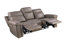 Delivering ultra-modern style and super cozy appeal, this power recliner set includes a sofa, loveseat, and chair, each of which offer loads of features, such as voice-activated controls for ultimate relaxation.Wrapped in a black top grain leather, this each recliner price offers everything from power headrests to massaging heated seats.In addition, this recliner lets you keep a refreshment or two nearby with its stainless steel cup holders.There is also convenient task lighting and a drop-down table for keeping snack on.Place this power recliner set in an entertainment room for a contemporary style.
